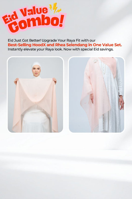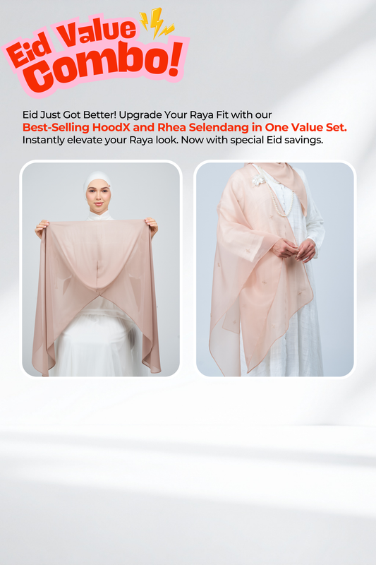Each set includes a bawal voile and a matching selendang, allowing you to transition seamlessly from day to night throughout Raya.