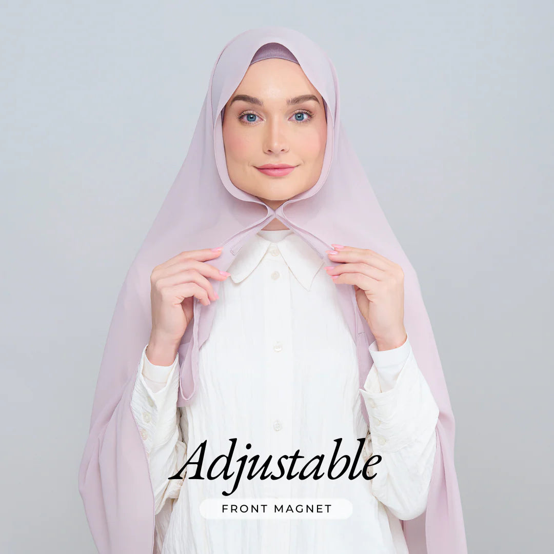 3IN1 Faith features an attached inner to a Full-Curve 1.8 Metre Pearl Chiffon Shawl with Sewn in Front & Back Magnet.