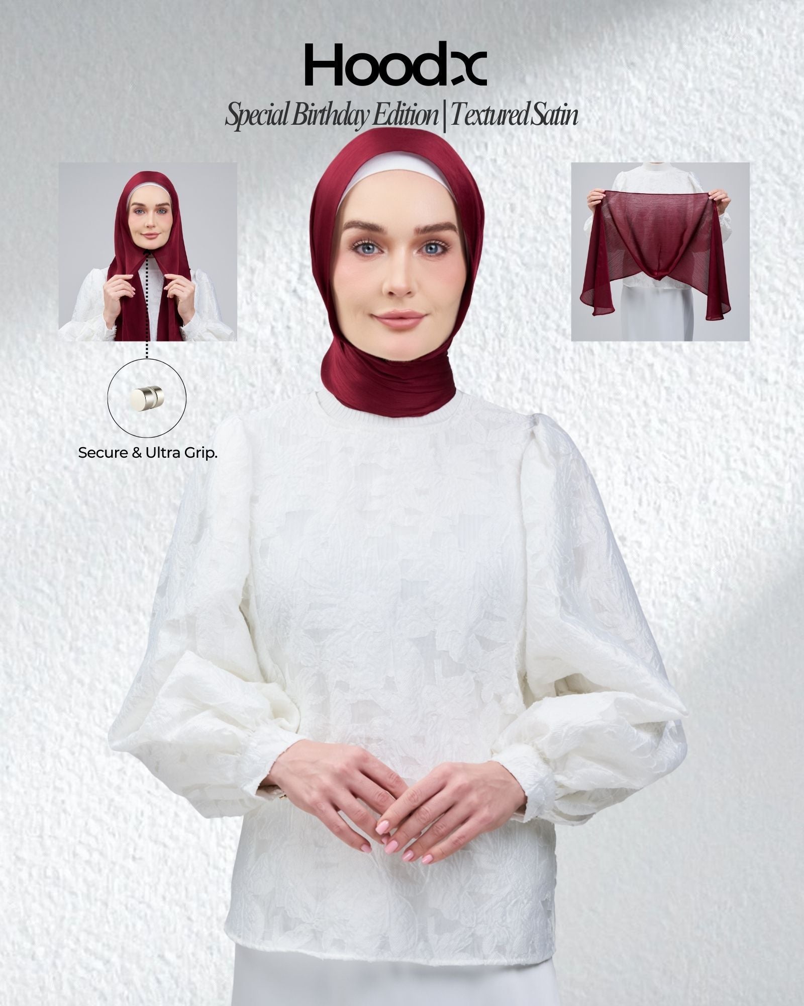 The HoodX Birthday Edition is a celebration of everything you’ve built. Boldness, softness, and the quiet confidence that follows you everywhere. Crafted with Textured Satin, the kind of satin that drapes elegantly on your neck.